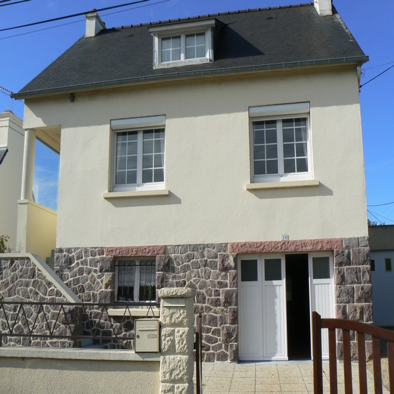 COMMEREUC IMMOBILIER vous propose à PAIMPOL, à 2 pas du centre ville, une maison de construction traditionnelle, très bien entretenue. Le rez-de-chaussée surélevé est très lumineux. Il est divisé en une cuisine aménagée, un séjour-salon, une chambre, une salle d'eau, WC. L'étage est composé de 2 belles chambres, une lingerie. Greniers. Vous profiterez également d'un rez-de-jardin avec une pièce de 40 m2 donnant sur une belle véranda ouvrant sur le jardin arboré, totalement clos. 2 garages complètent l'ensemble.