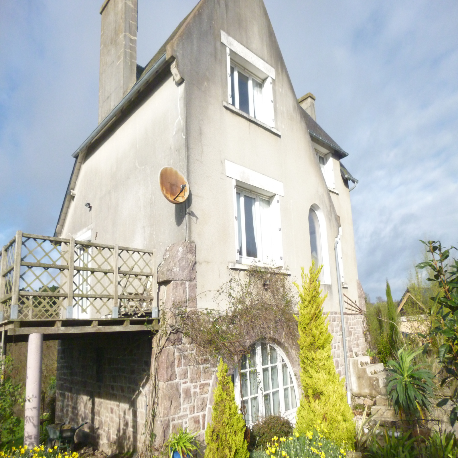 Entre le Port de Paimpol et le Port de Lézardrieux, avec sa vue dégagée sur le Trieux, charmante maison comprenant au premier étage : une entrée, une cuisine aménagée, un salon/séjour, une salle de bain/wc. A l'étage : deux chambres. Au rez de jardin : deux bureaux-ateliers, une salle de bains wc, une buanderie. Jardin paysager et fleuri.