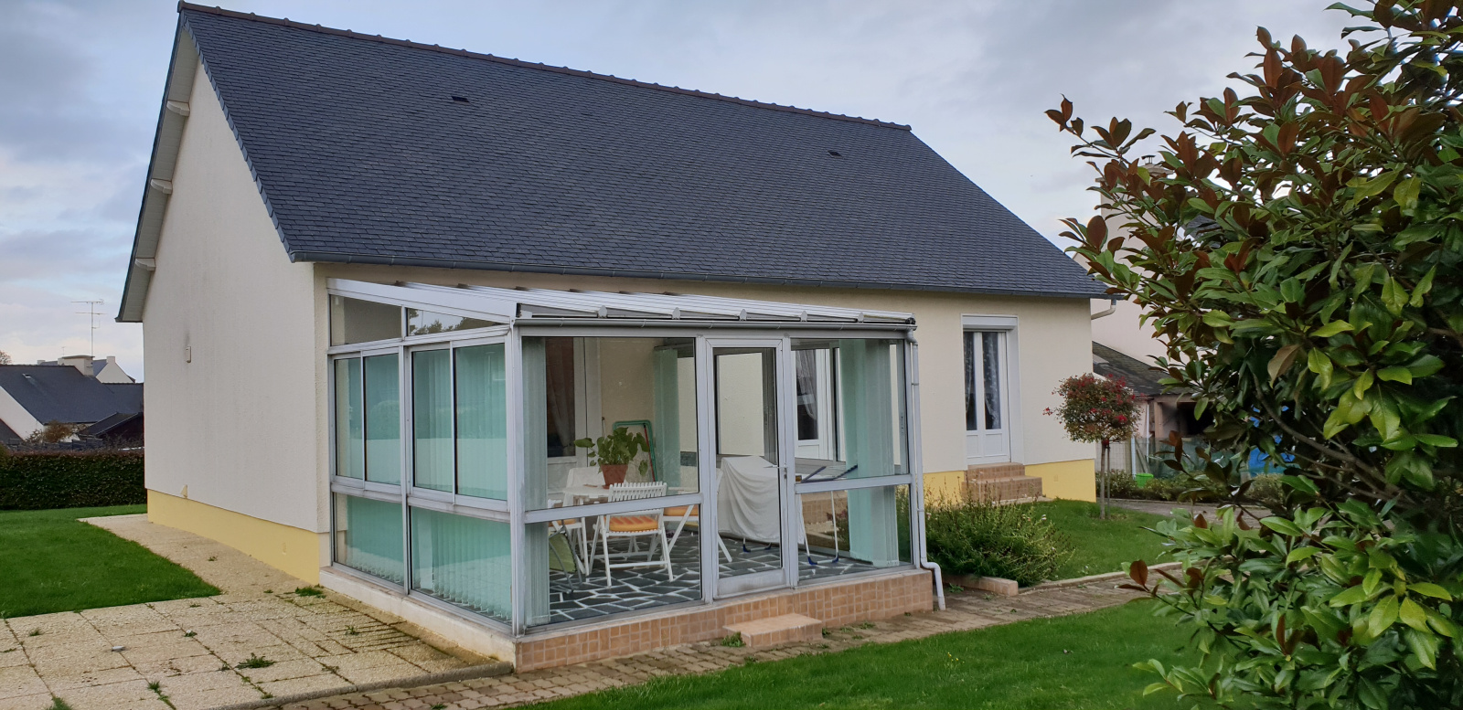 COMMEREUC IMMOBILIER vous propose une maison de plain-pied dans un quartier résidentiel, à proximité du centre ville de PAIMPOL. Cette maison est lumineuse et parfaitement entretenue. Sa surface habitable d'environ 75 m² se compose d'un séjour/salle à manger, une véranda côté jardin, une cuisine, une salle de douche, deux chambres, un garage. Le tout sur un jardin clos de 600 m².