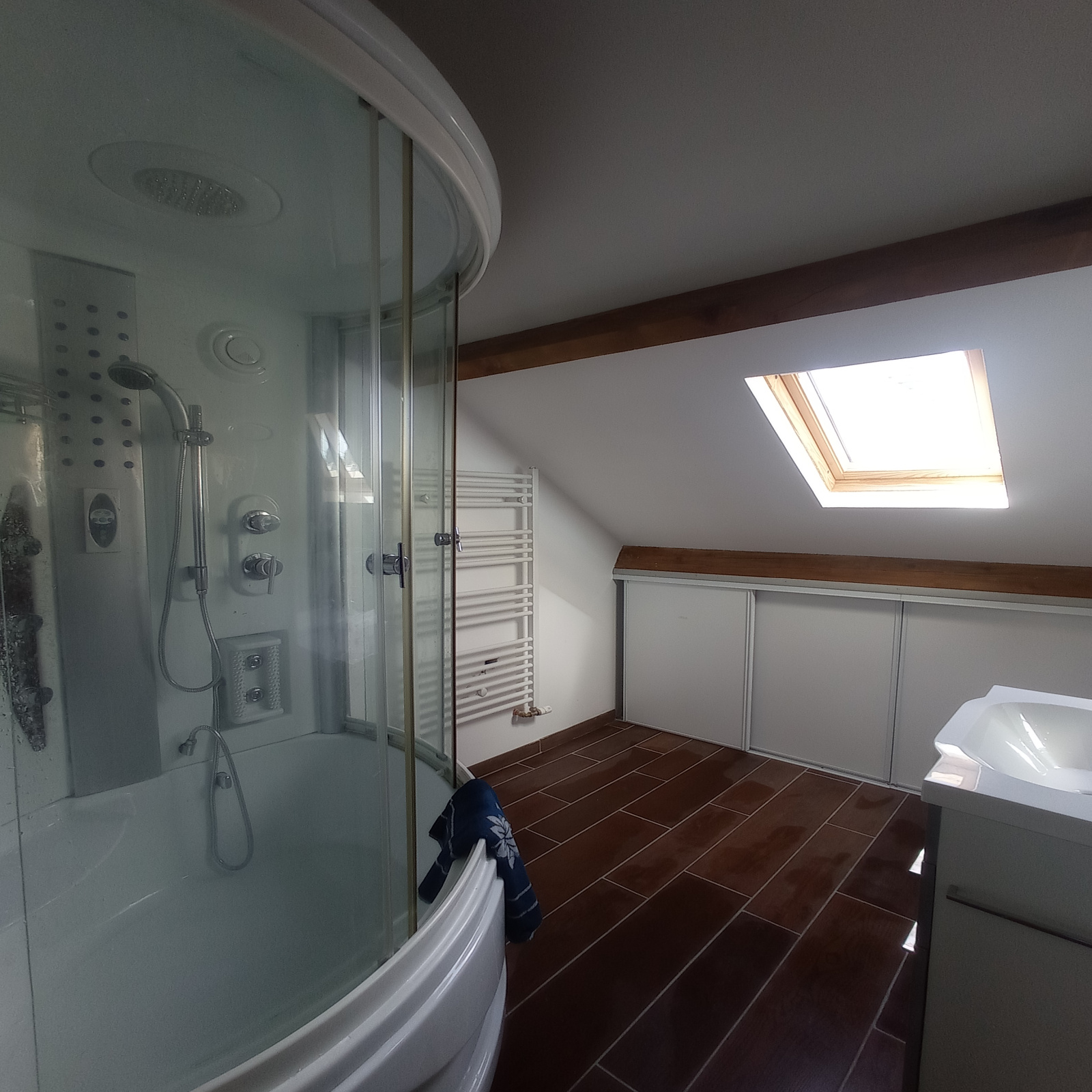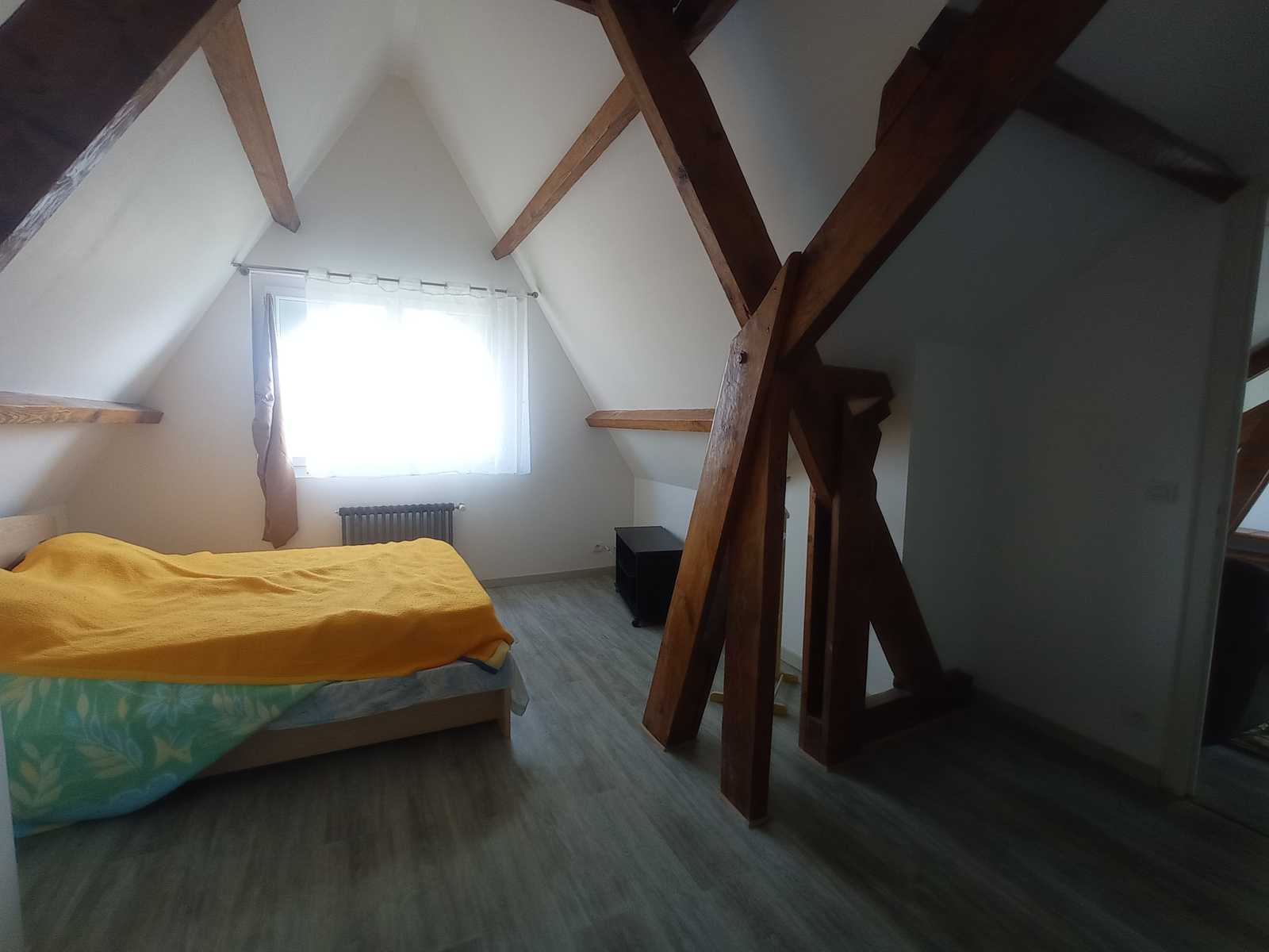 - à l'étage : la mezzanine dessert trois chambres dont une d'environ 20 m², une salle d'eau, un sanitaire indépendant.