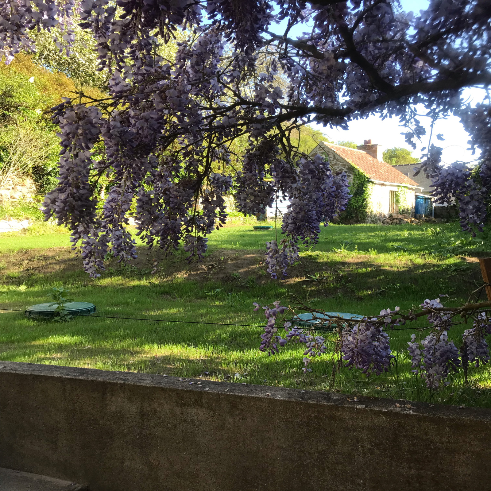 Terrasse exposée plein sud, et abritée des vents, garage, petite dépendance, terrain de 1289 m².
