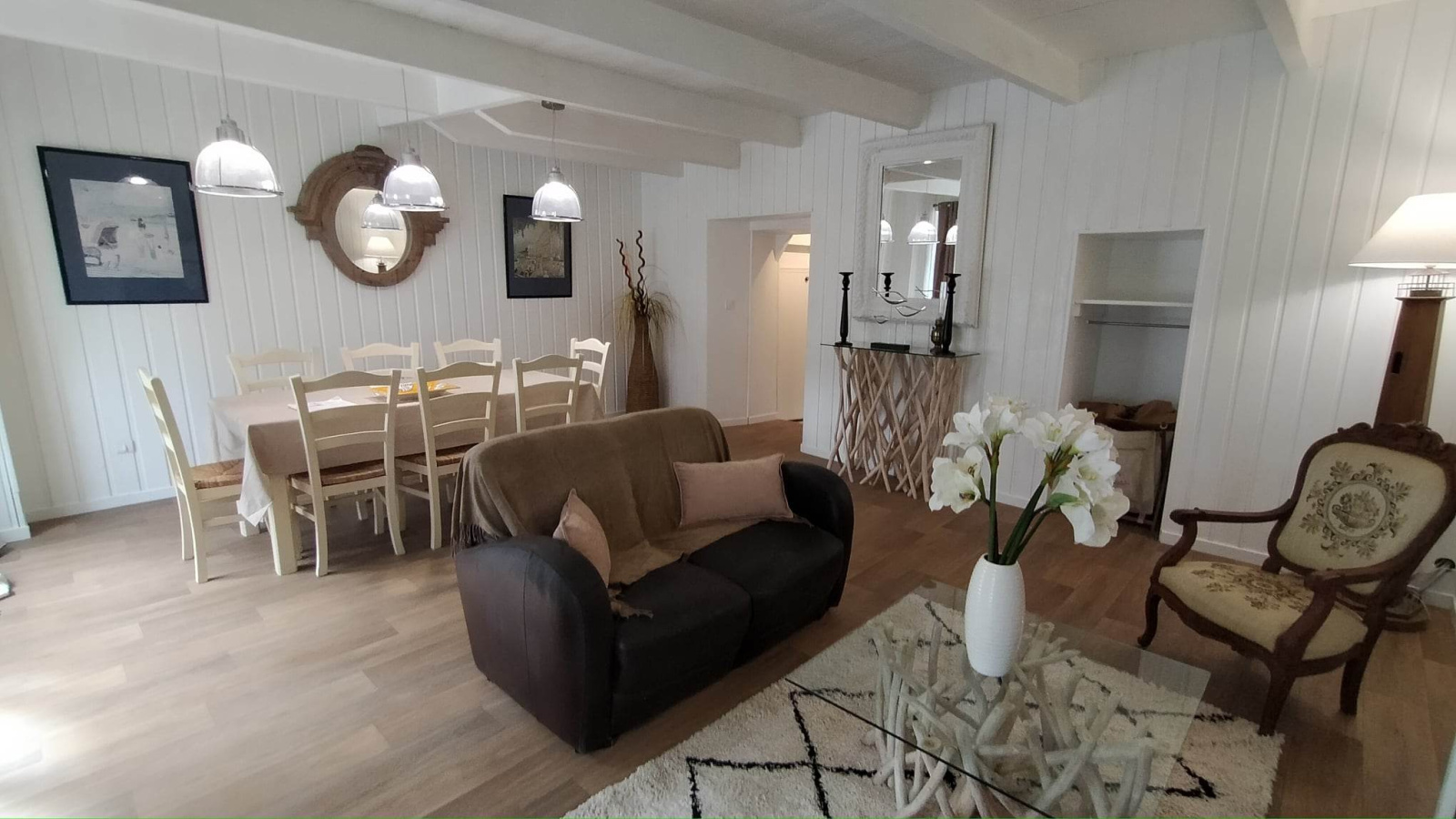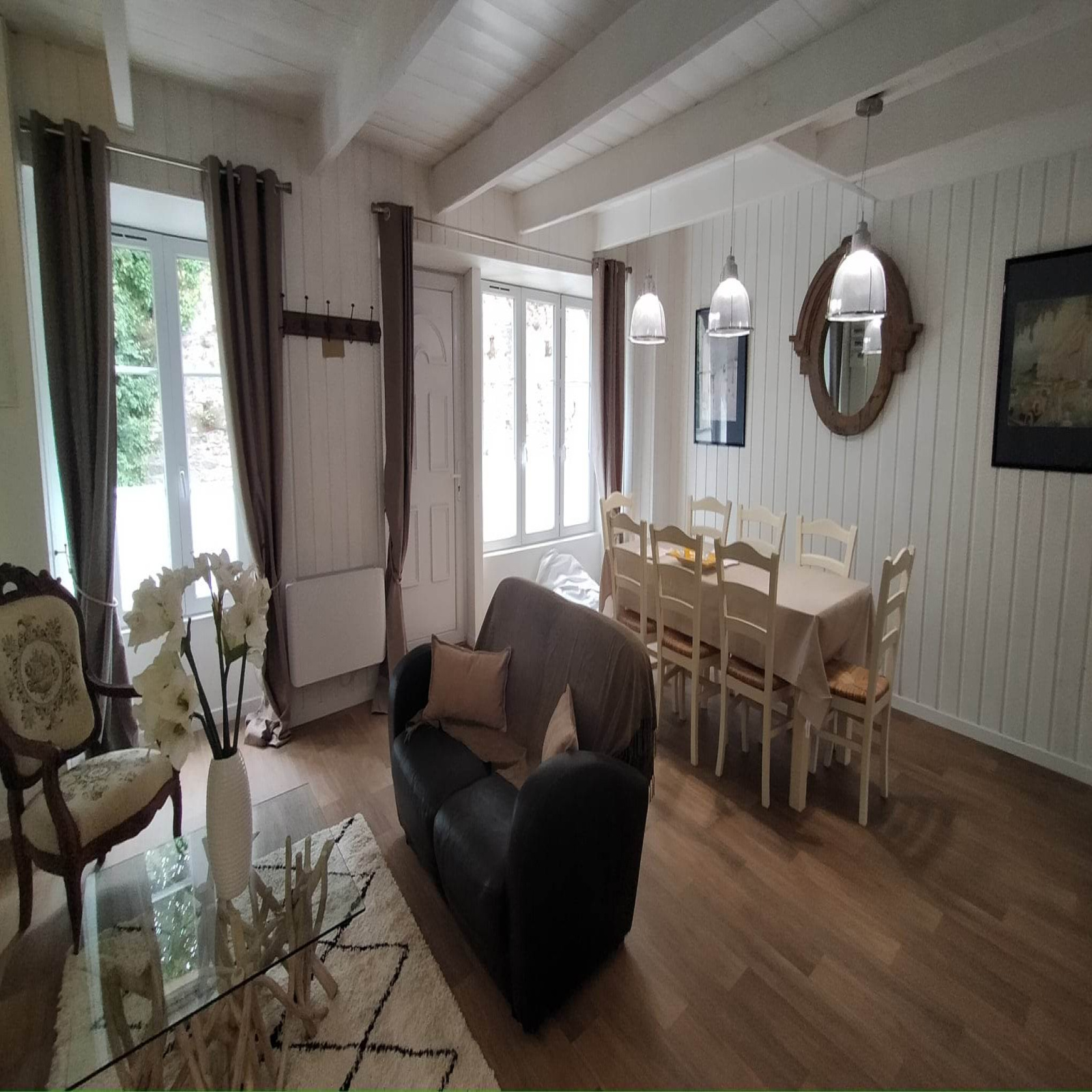 - au rez-de-chaussée d'une belle pièce à vivre d'environ 28 m², d'une cuisine équipée/aménagée.