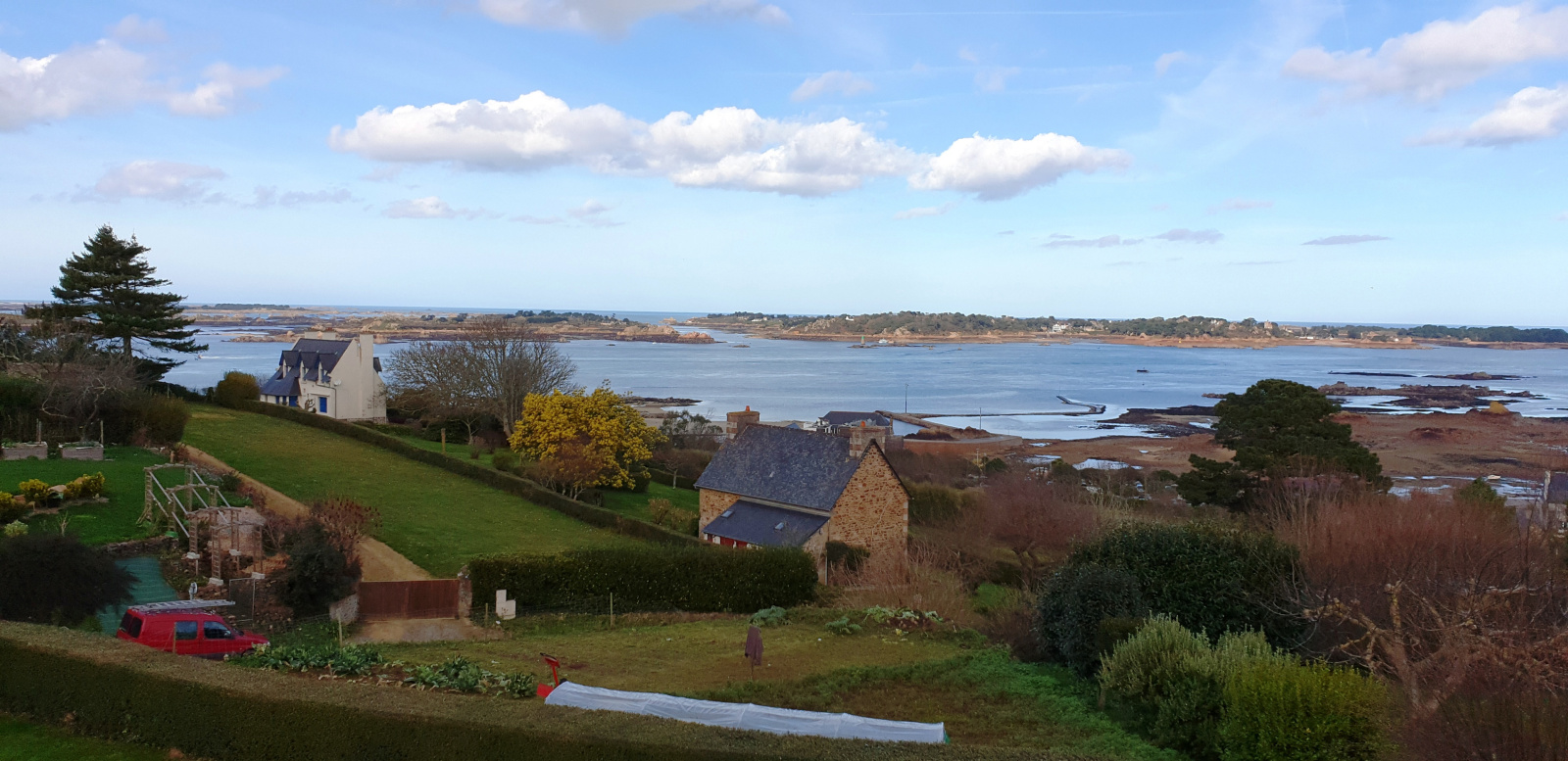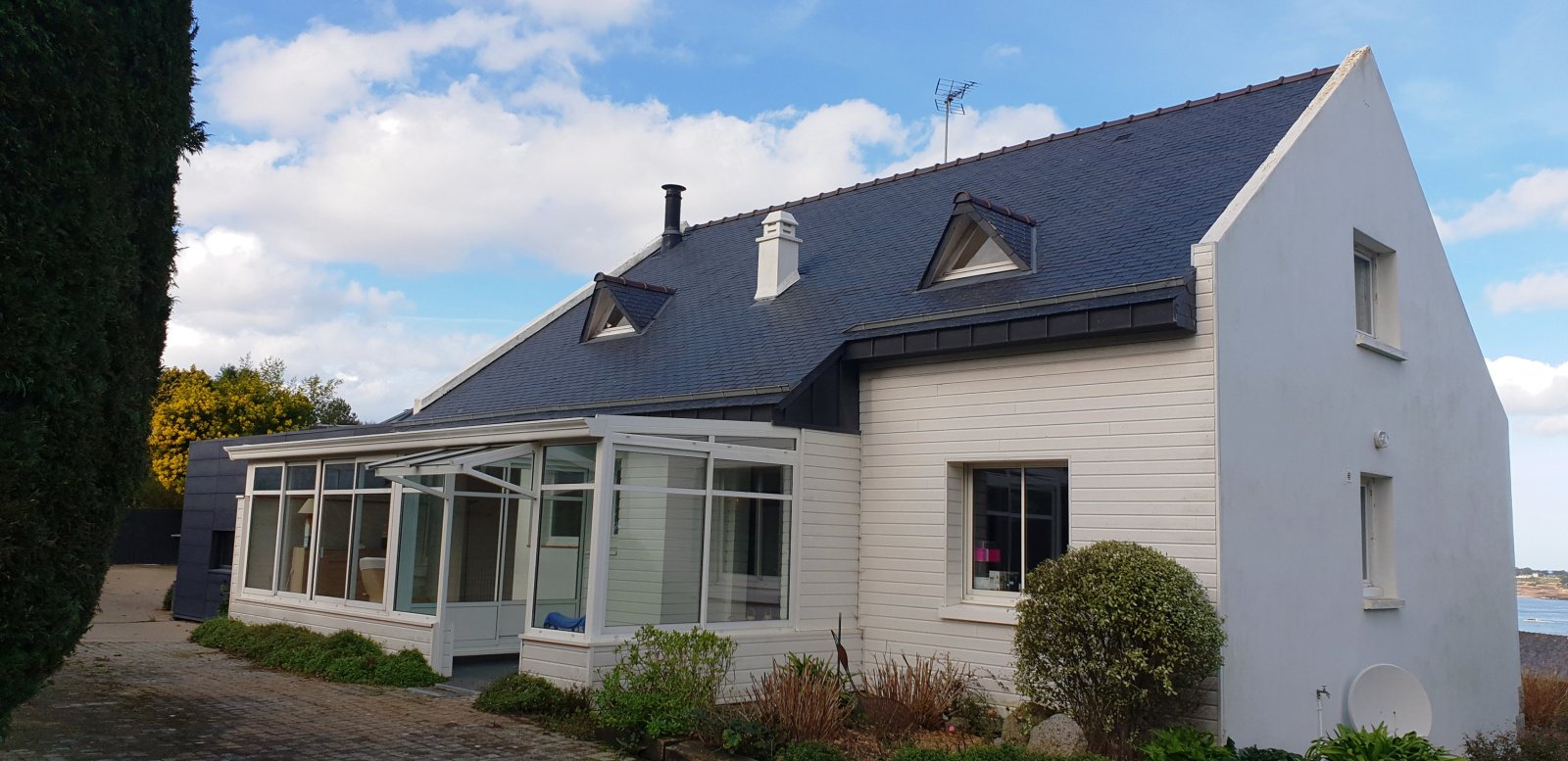 Vue imprenable à 180° sur l'Ile de Bréhat pour cette maison traditionnelle entièrement rénovée avec extension contemporaine...Ce havre de verdure bénéficie d'une situation exceptionnelle et d'un environnement très calme. Le rez-de-chaussée se compose d'un séjour salle à manger traversant avec cuisine à l'américaine aménagée, un salon avec bow-window, bureau bibliothèque, dressing, salle de bain avec douche, WC ainsi qu'un superbe salon cathédrale avec poêle et baies vitrées ouvrant sur les terrasses en IPE. Une véranda-salon vous invite également à la détente. A l'étage un dégagement dessert trois chambres et une chambre d'enfant, salle de bain et WC. Un sous-sol partiel comprend la chaufferie ainsi qu'une buanderie. Vous serez également sous le charme de son jardin arboré et clos ayant garage et parking et sa magnifique vue sur l'archipel de Bréhat.