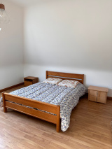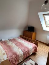 - Rez-de-jardin : entrée avec placards, séjour lumineux avec poêle à pellets et bois, cuisine ouverte, 1 chambre, salle d’eau, WC séparé.