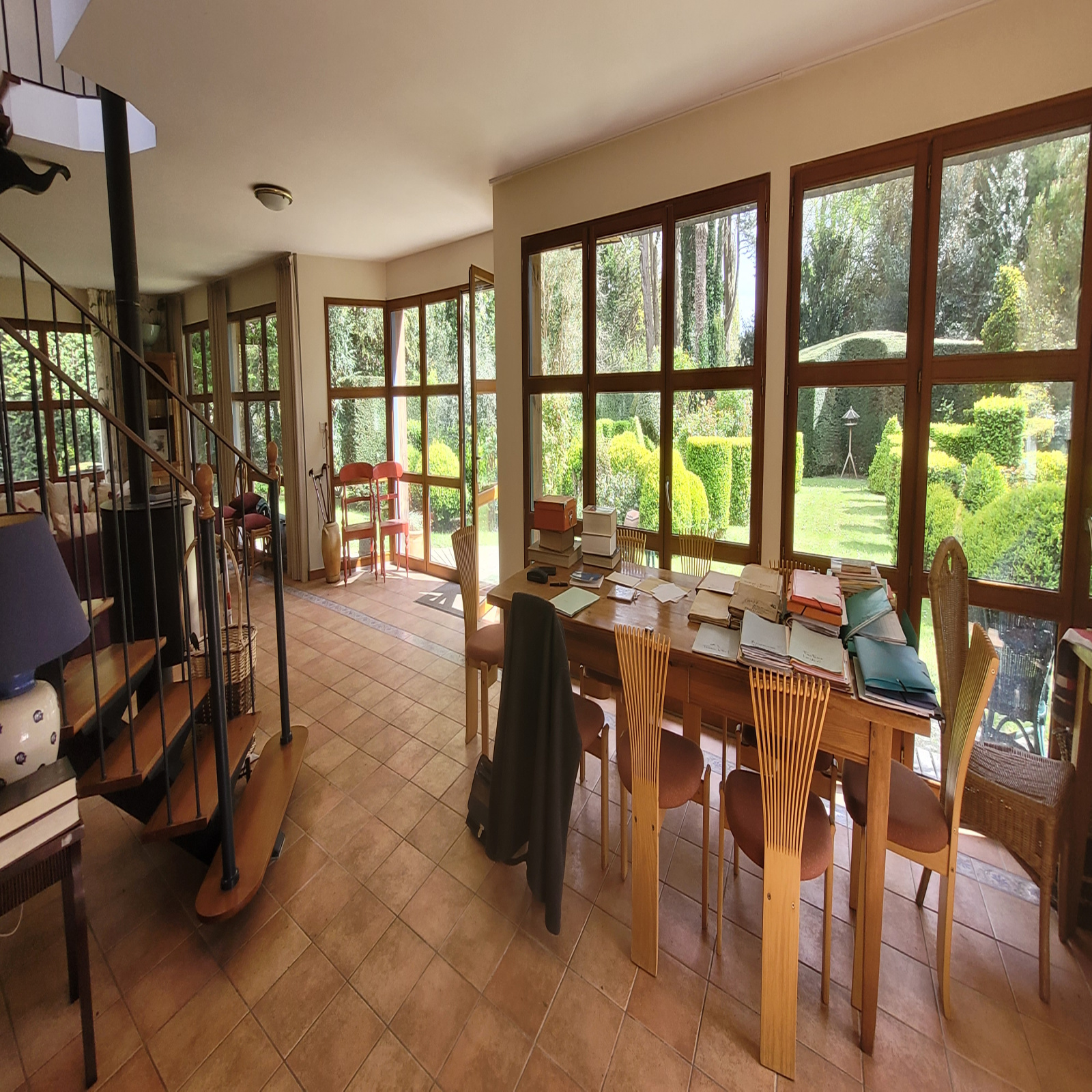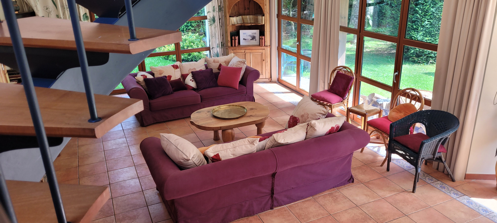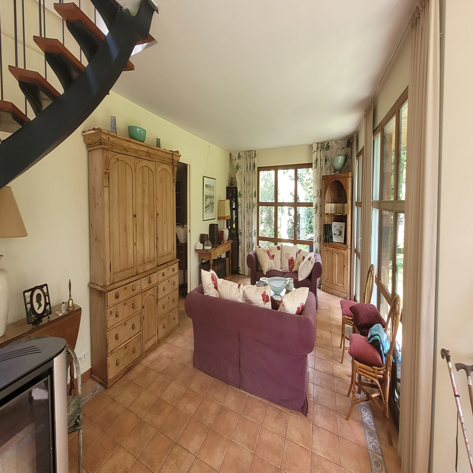 COMMEREUC IMMOBILIER vous propose d'acquérir sur la commune de PLOUHA, une maison construite dans le courant de l'année 2000 sur un jardin botanique, d'esprit "à la française" de plus de 2000 m². Sa surface vitrée et son architecture particulière font de cette maison un bien tout-à-fait atypique ouvert sur la nature tout en étant en cœur de village, sans vis-à vis. Cette propriété libre à la vente se compose au rez-de-chaussée : d'une cuisine aménagée et équipée, d'une pièce de vie d'environ 75 m² avec poêle à bois, d'une chambre, d'une salle d'eau avec sanitaire, d'un débarras et d'un wc avec lave-mains. La mezzanine de l'étage permet d'accéder à deux chambres avec chacune salle d'eau et sanitaire. Les plus de cette propriété : les commerces à pied, les plages du Palus et de Pors Moguer à 3 km.