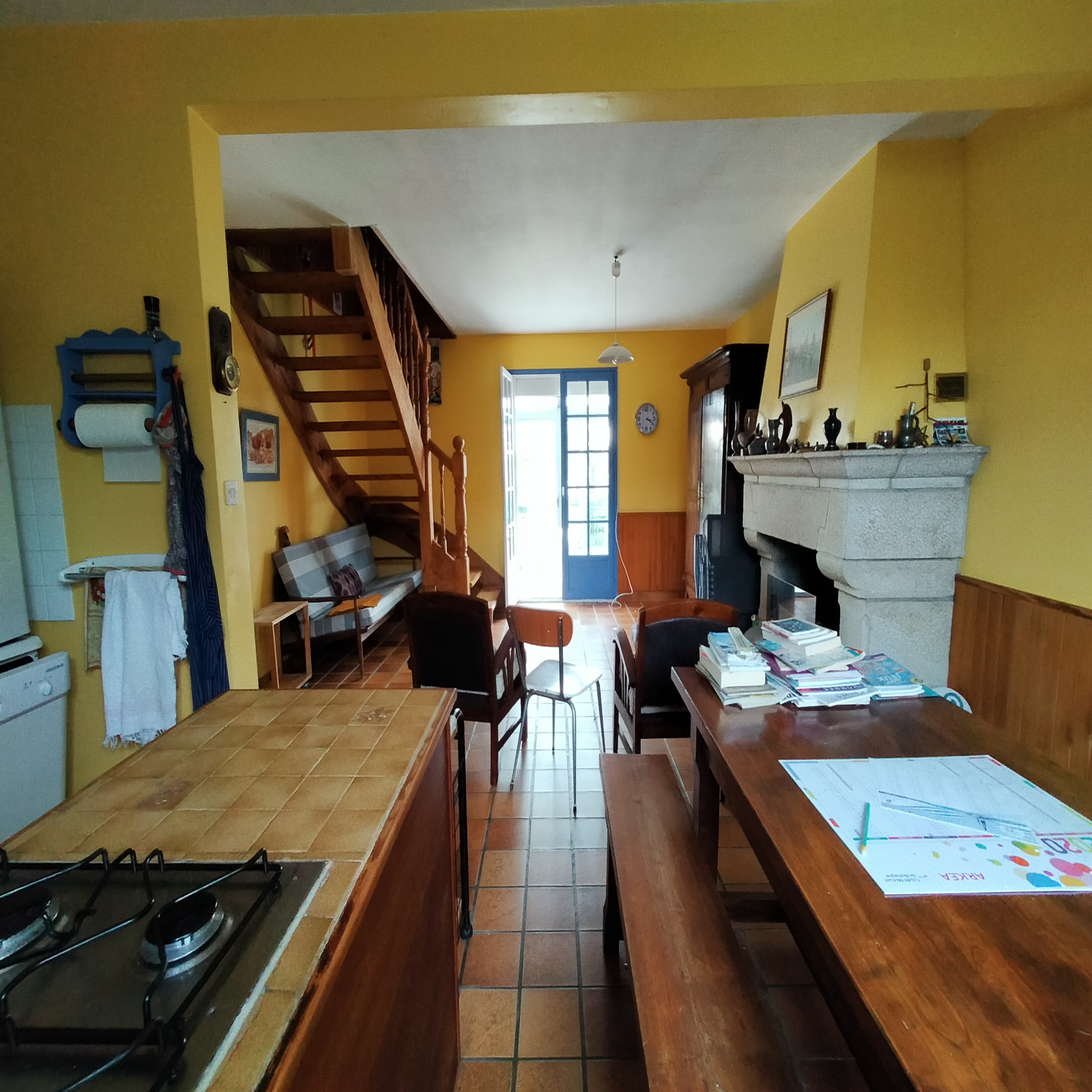 - au rez-de-chaussée : une entrée, un sanitaire, une salle d'eau, une chambre, une pièce à vivre d'environ 34 m² avec sa cuisine ouverte et son insert bois. Une véranda d'environ 16 m² , pièce maitresse de la maison avec son exposition plein sud et sa jolie vue sur l'esturaire, complète le rez de chaussée.